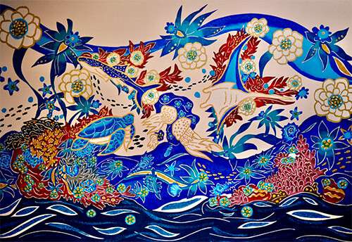 The tins are designed by Okinawan bingata artist Yuka Arakaki. Bingata is a traditional Okinawan dyeing technique known for vivid colors and intricate patterns.